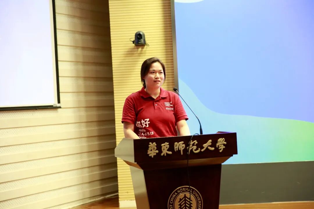 老生代表、翻译专业2022级本科生、中国国际大学生创新大赛(2024)上海市金奖获得者高俐天天结合自身的成长经历,分享了三点体会:一是建议新生合理规划大学生活,既要有方向感,也要保持灵活性;二是鼓励大家勇敢尝试,不怕失败,在各类活动中探索自我、积累经验;三是强调外语专业学生的独特优势,不要被偏见束缚,而要主动搭建舞台、突破边界。