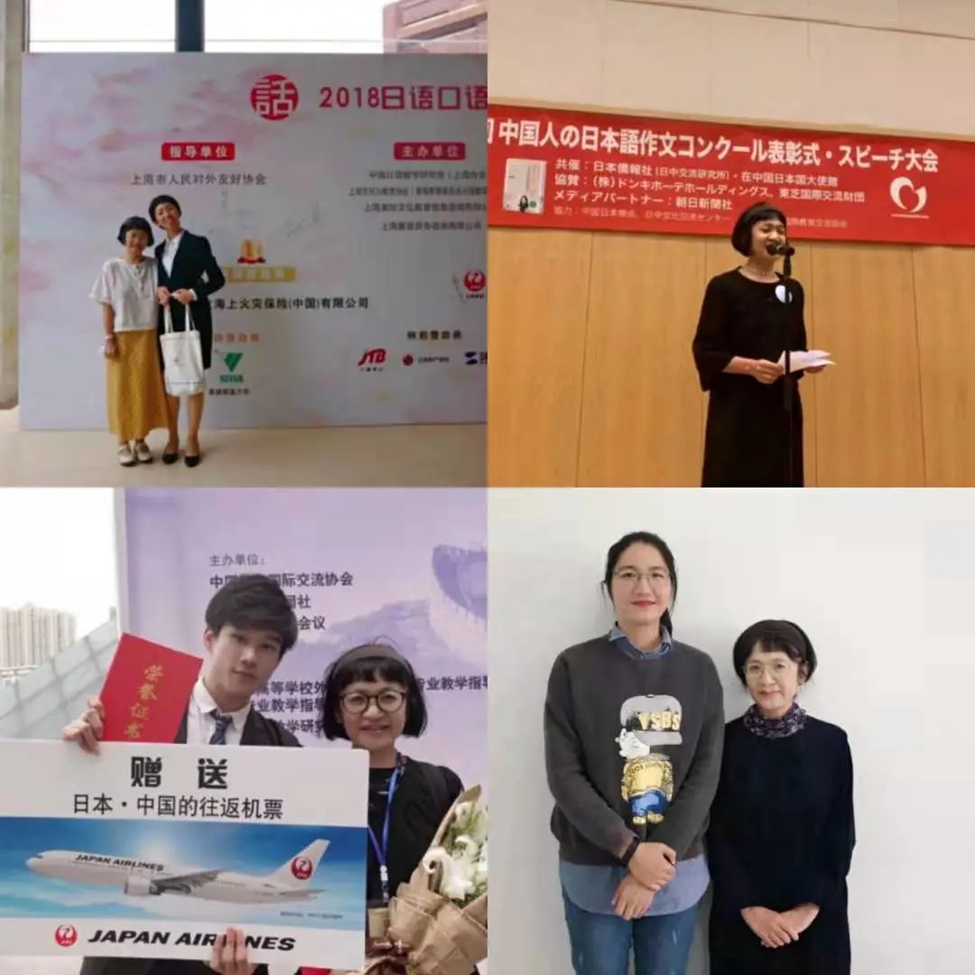 此外,岛田老师还积极参加系里安排的指导学生比赛的工作,在岛田老师的指导下,许多同学脱颖而出,在各类赛事中都取得了令人骄傲的成绩。2018年6月,指导学生在首届日语口语大赛中获二等奖;同年10月,指导学生在第14届中国人日语作文比赛中获一等奖、三等奖,岛田老师获优秀指导教师奖;同年11月,指导学生在第31届上海市大学生日语才能演示大赛获上海日本总领事颁发的“领事特别奖”;2019年4月,指导学生获第14届中华全国日语演讲比赛华东预赛特等奖;同年9月,指导学生在第15届中国人日语作文比赛中获二等奖、三等奖和佳作奖;同年11月,指导学生获2019年笹川杯品书知日本作文大奖赛特等奖、优秀奖,岛田老师获优秀指导教师奖;2020年11月,指导学生获第16届中国人日语作文比赛三等奖;同年11月,指导学生获第15届中华全国日语演讲比赛华东地区三等奖;2021年6月,指导学生获“中日友好杯”中国大学生日语征文比赛二等奖、三等奖,岛田老师获优秀指导教师奖、园丁奖。