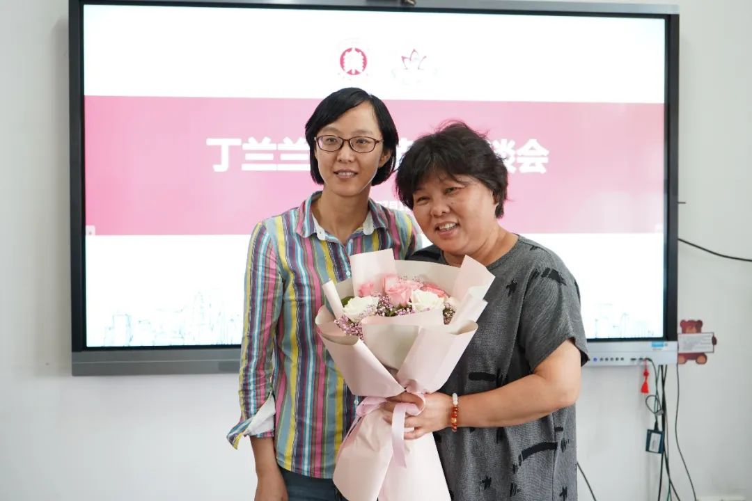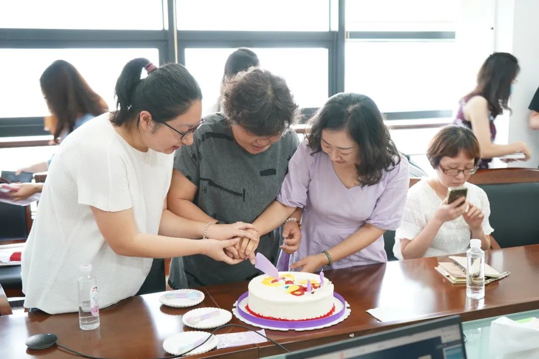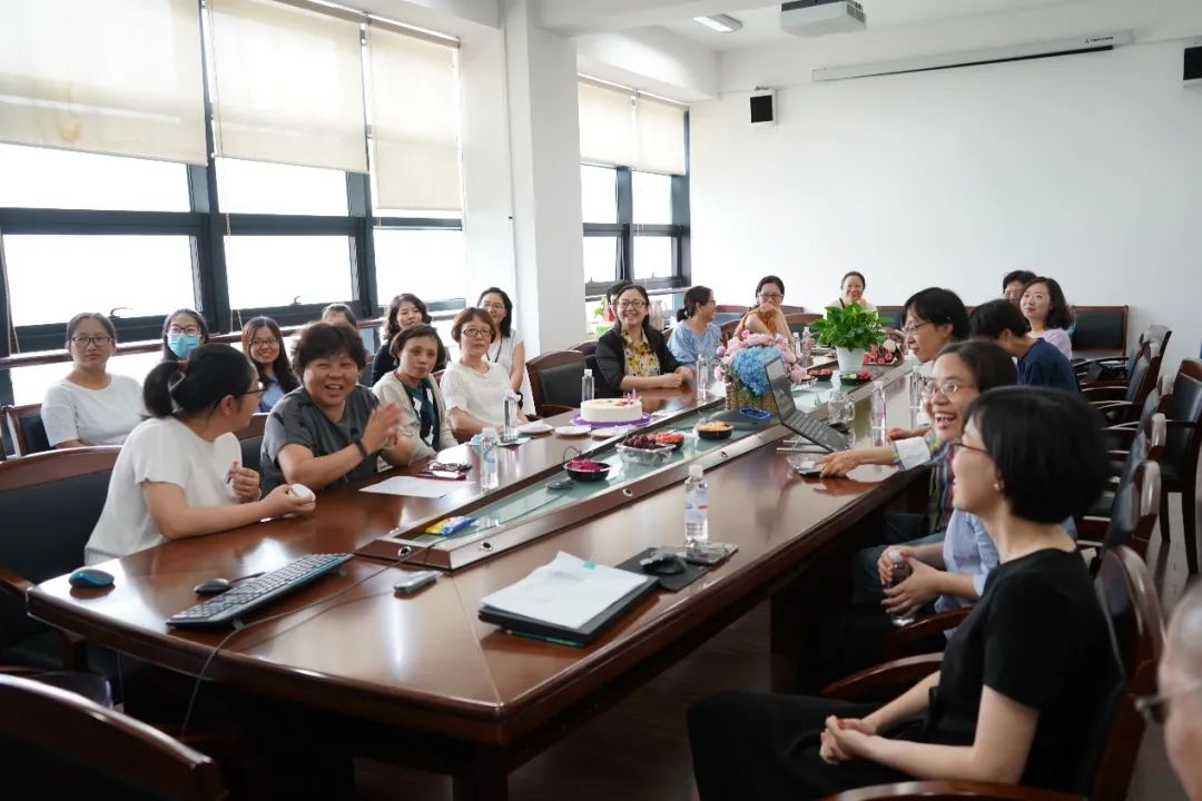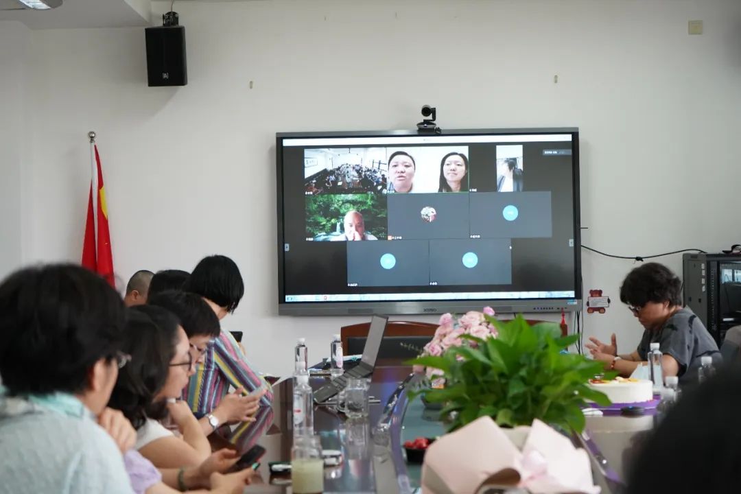 最后,大家一起为丁老师献上鲜花,分享蛋糕。同时也播放了丁老师的工作剪影视频,唤起了老师们对过去美好时光的回忆。