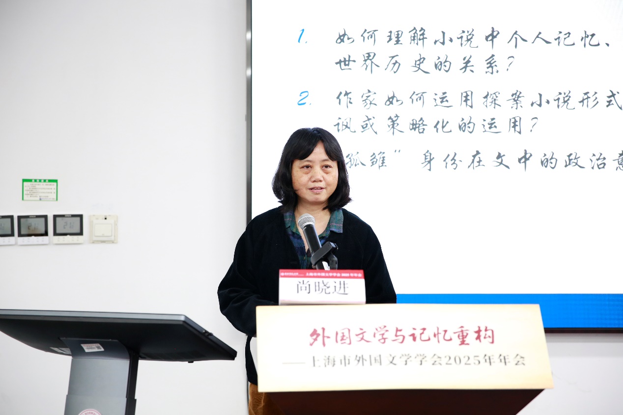 副会长、复旦大学卢丽安教授在她题为《遗忘或记忆?——从个人生命中的记忆说记忆重构实践》的报告中,结合家族史与记忆理论,指出记忆不仅是个人认知的基础,更是构建集体认同与文化共识的纽带。她聚焦两岸关系,呼吁挖掘与重构被遗忘或被沉默的历史,促进情感联结与文化认同。她特别强调,在中国的外国文学教学与研究场域,学术工作与记忆构建之间有着深厚的内在联系,记忆研究不仅是理论探讨,更是连接历史与当下、学术与社会的桥梁。