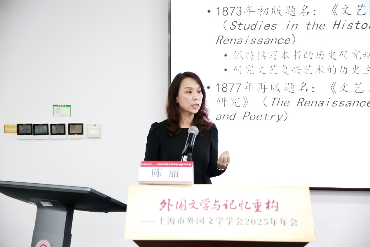 华东理工大学陈丽教授以《唯美主义与基督教精神——沃尔特·佩特的历史书写与文化理论》为题,她指出,佩特在《文艺复兴》《伊壁鸠鲁主义者马里乌斯》等作品中,借历史叙事阐发其艺术哲学。陈丽教授分析认为,佩特通过重构希腊思想与早期基督教传统,试图在现代知识条件下重建培育完整人性的文化理想。这一路径不同于阿诺德的“希伯来-希腊”融合模式,体现出佩特文化理论的独特价值。