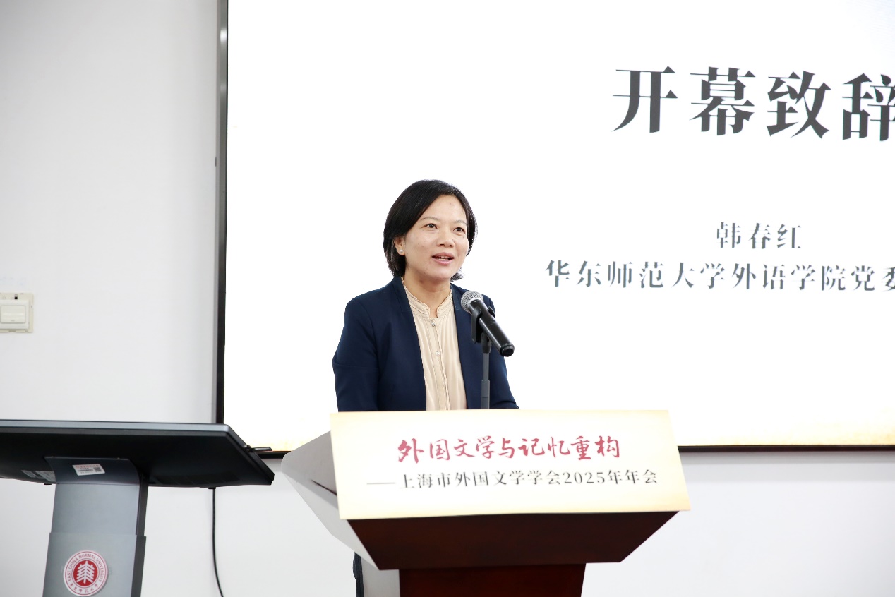 韩春红书记首先代表承办单位,对与会专家、学者和师生表示热烈的欢迎。韩书记特别以“三张名片”概括了学院外国文学研究的特色:一是以“丽娃河畔的翻译家群”为代表的深厚的外国文学翻译与研究传统;二是学院近年来积极打造的活跃而开放的多语种文学研究学术共同体。文学研究团队通过“大夏外国文学研究交锋论坛”“聚学讲坛”及“攀峰计划”沙龙等系列品牌活动,持续推动学术交流和创新;三是当下文学研究团队正着力推进的以“四个服务”为导向的文学研究转型,推动外国文学研究服务区域国别学建设、教育高质量发展、地方经济社会发展,以及学校新兴学科布局。她强调,在抗战胜利80周年的特殊历史节点,本次年会以“外国文学与记忆重构”为主题,无疑具有深远的意义。