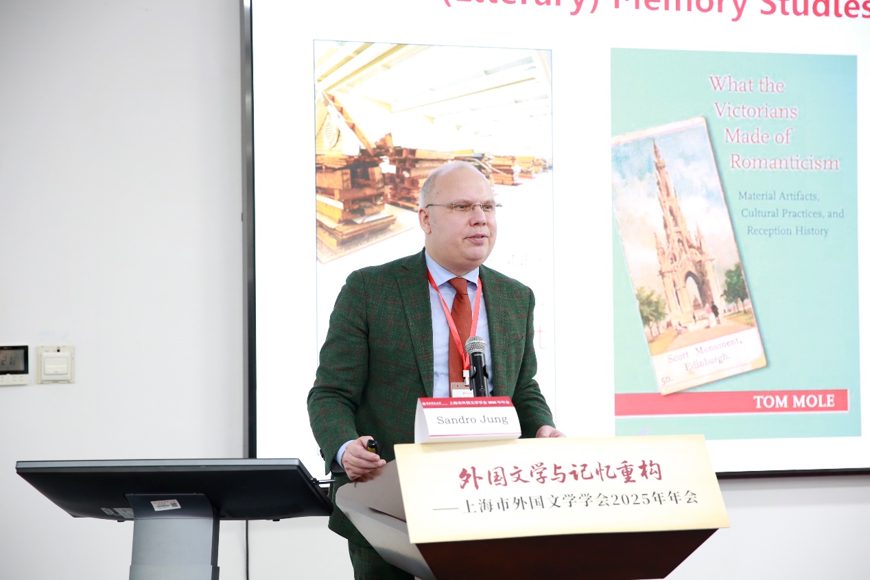 复旦大学Sandro Jung教授以“Foreign Literature and Cultural Memory: Literary Objects and Reading History”为题,从媒介与接受史的视角,分析了文学记忆在跨媒介传播中的流动性与创造性。他通过分析18世纪末描绘《四季》《阿德莱德》《少年维特之烦恼》等经典作品场景的工艺品、装饰物等实物载体,揭示了文学记忆形成的一种另类历史。Jung教授指出,这些视觉化的图像叙事并非简单复制原著,而是通过筛选、强调甚至改写某些元素,构建出独立的阐释框架,从而塑造了读者-观看者对文学文本的记忆与理解。