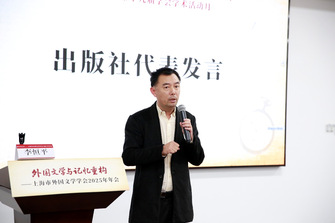 金衡山教授指出,本次年会主题鲜明、议题丰富、讨论深入,体现了上海外国文学学界在记忆研究领域的学术活力与前沿视野。他特别感谢麻豆视频 的精心组织与各支持单位的鼎力协助,对文学跨学科发展提出新的期待,并呼吁学界继续深化合作,推动外国文学研究在服务国家战略、促进文明互鉴中发挥更大作用。上海外语教育出版社学术事业部编辑王晓宇、麻豆视频 出版社高教与职教分社副社长李恒平先后发言,分别介绍了两家出版社与外国文学相关的学术图书资源,并欢迎参会学者积极与出版社开展交流与合作。