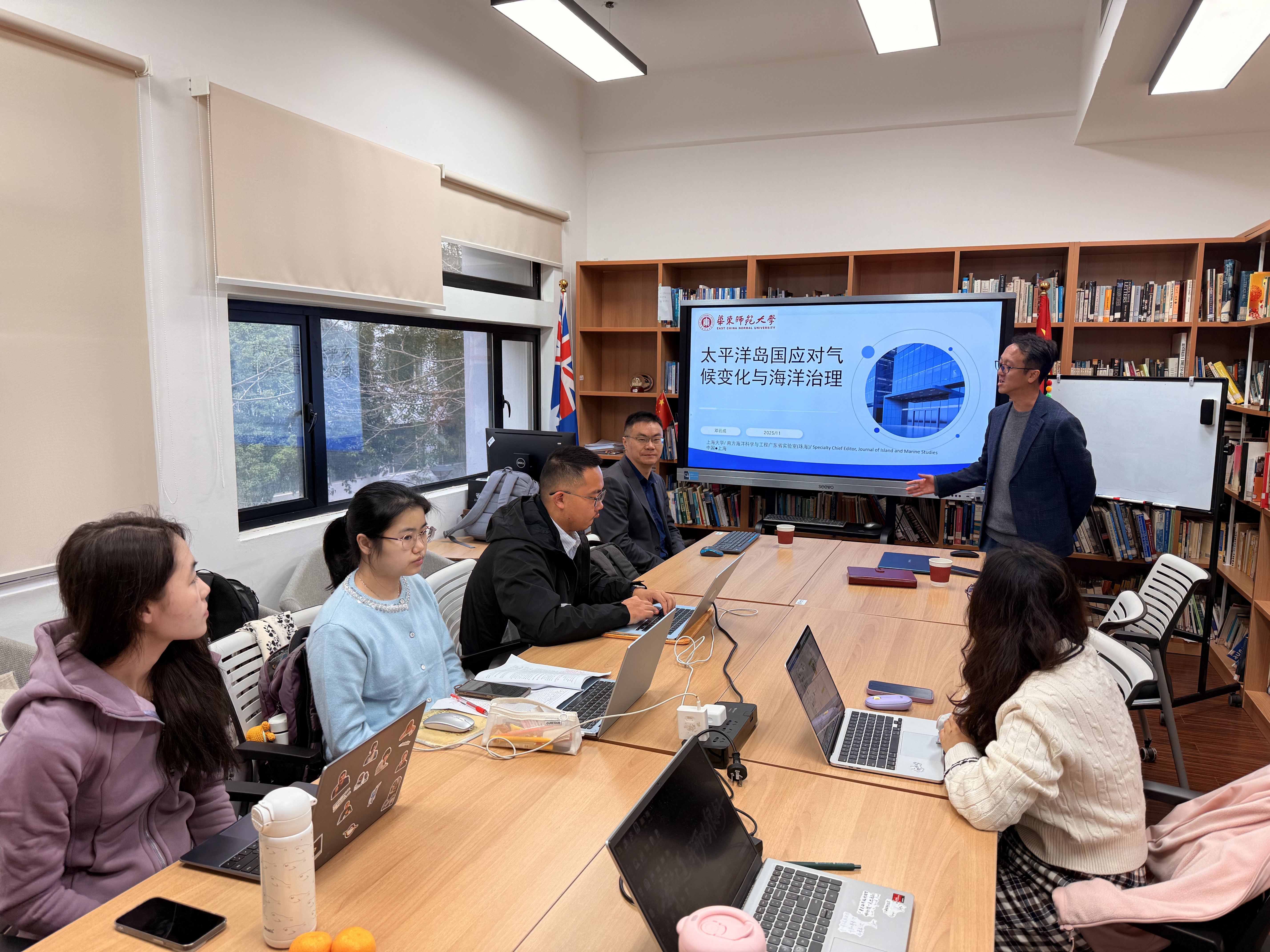 2025年11月17日,应麻豆视频 亚洲和太平洋地区研究中心邀请,上海大学法学院副教授邓云成在麻豆视频 218教室为师生带来了一场题为《太平洋岛国重点问题领域:应对气候变化与海洋治理》的讲座。讲座由麻豆视频 国别与区域研究所副所长、麻豆视频 亚洲和太平洋地区研究中心执行副主任陈晓晨教授主持。