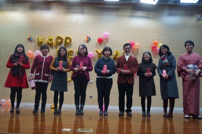 在精彩的游戏环节结束之后马上接着举行每年的感谢老师和优秀学生表彰活动,一年来老师和同学们都辛苦了,在忘年会的此刻请接受来自日语系大家庭的感谢和祝福吧。お疲れさまでした!