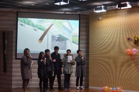 第二个和第三个游戏环节分别是“日语词语接龙“和”听曲抢答“,低年级的同学和大四的学长比试起来却毫不逊色,笑到了最后,反倒是几次抛词把前辈紧张出一身汗,看来果真是青出于蓝而胜于蓝啊。听曲抢答环节既有电视剧也有电影,从90年代的《悠长假期》到近几年的网红电影《你的名字》网红电视剧《朝五晚九》,看来大家在课堂学习日语的同时也广泛涉猎了日剧日影领域呢。