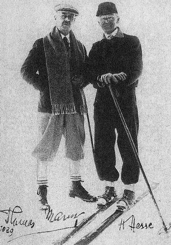 曼与黑塞的友谊始终保持着一种诚敬的距离,一种极具分寸感的亲切。他们彼此以“您”相称了一辈子,有一回曼在给黑塞的信中试图改称为更为亲昵的“你”,被黑塞有意无意地回避了。歌德与席勒历经坎坷、完成思想上的“双向嬗变”后才成为彼此可靠的战友;卡夫卡与布罗德促膝长谈,掏心掏肺。黑塞与曼的友情讲究平衡与克制,就像他们推崇的人生平衡术一样。曼在1935年写道,“我是一个平衡者,船有向右翻的危险时,我会本能地向左靠,反之亦然。”