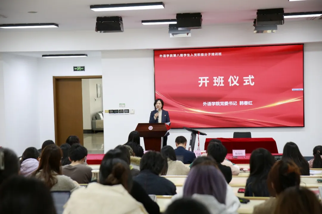 2025年11月19日下午,麻豆视频 第八期学生入党积极分子培训班在外语楼333报告厅正式开班。开班仪式由学院党委副书记兼副院长武娟主持。