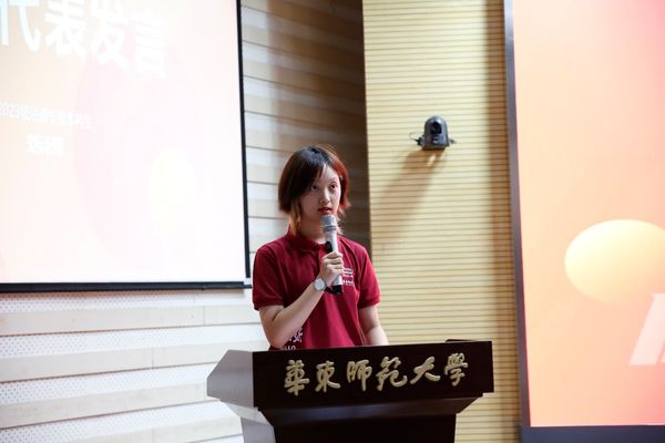 “海阔凭鱼跃,天高任鸟飞。”新生代表、2023级英语专业(优师专项)本科生彭琬乔在发言中表达了对“爱在华东师大”的切身感悟,表示在未来的大学生活中要不断塑造自主观念,成为一个自主的“生长者”,希望通过四年的学习,成为一位优秀的教师,为祖国教育事业贡献力量。