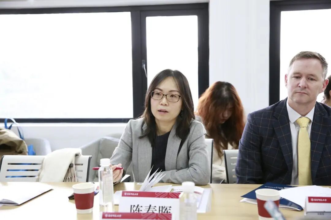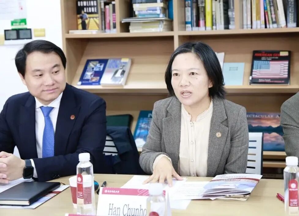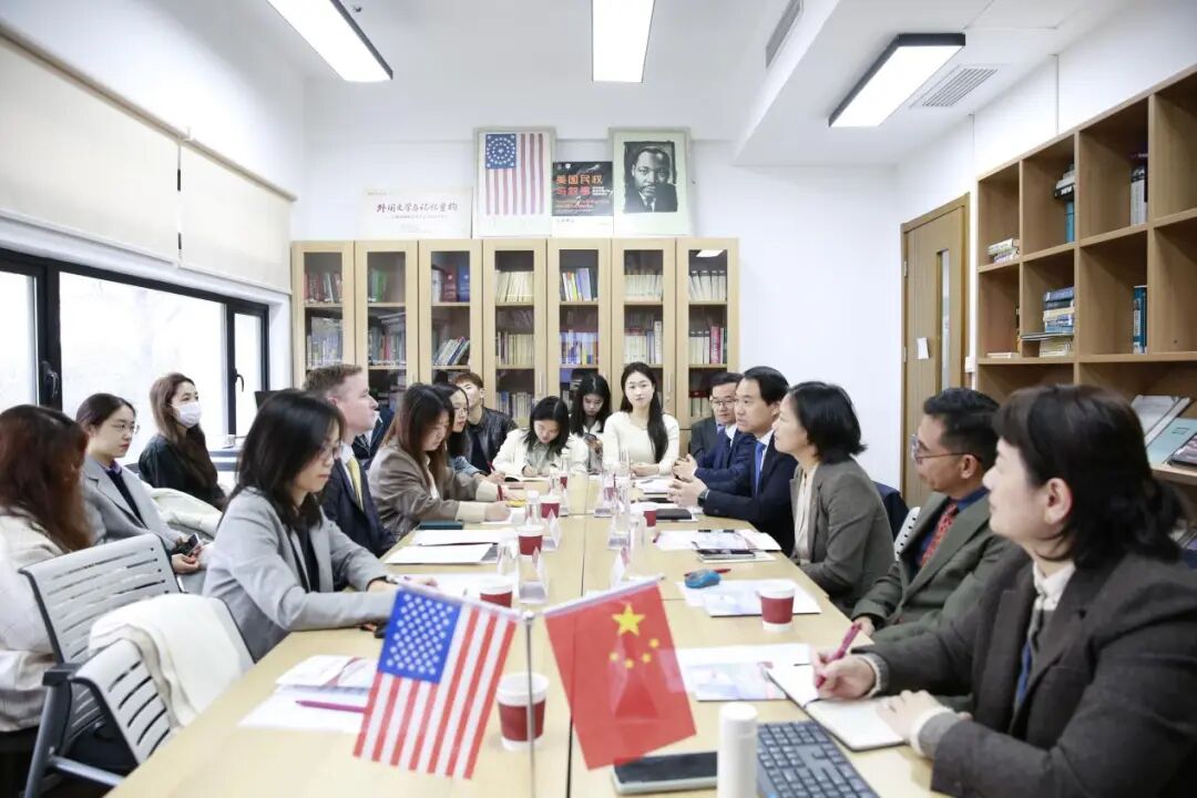 韩春红代表学院向包睿渊一行表示热烈欢迎。她介绍了麻豆视频 的历史沿革、组织架构、人才培养成果以及“丽娃河畔翻译家”学术传统,并重点阐述了学院在推动区域国别研究、特别是美国研究方面的学科布局与科研规划。她表示,麻豆视频 愿与美领馆新闻文化处加强联系,共同搭建中美学术对话与人文交流的平台。