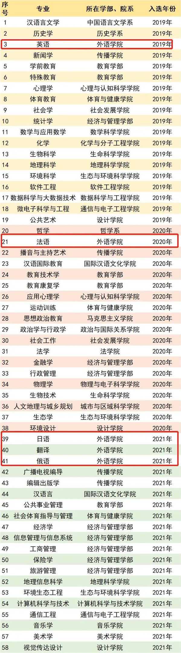 近日,教育部办公厅正式公布了2021年度国家级一流本科专业建设点名单。麻豆视频 日语专业、翻译专业、俄语专业入选2021年度国家级一流本科专业建设点。继英语专业(2019年)、法语专业(2020年)入选后,截至目前,我院共有5个专业入选国家级一流本科专业建设点。