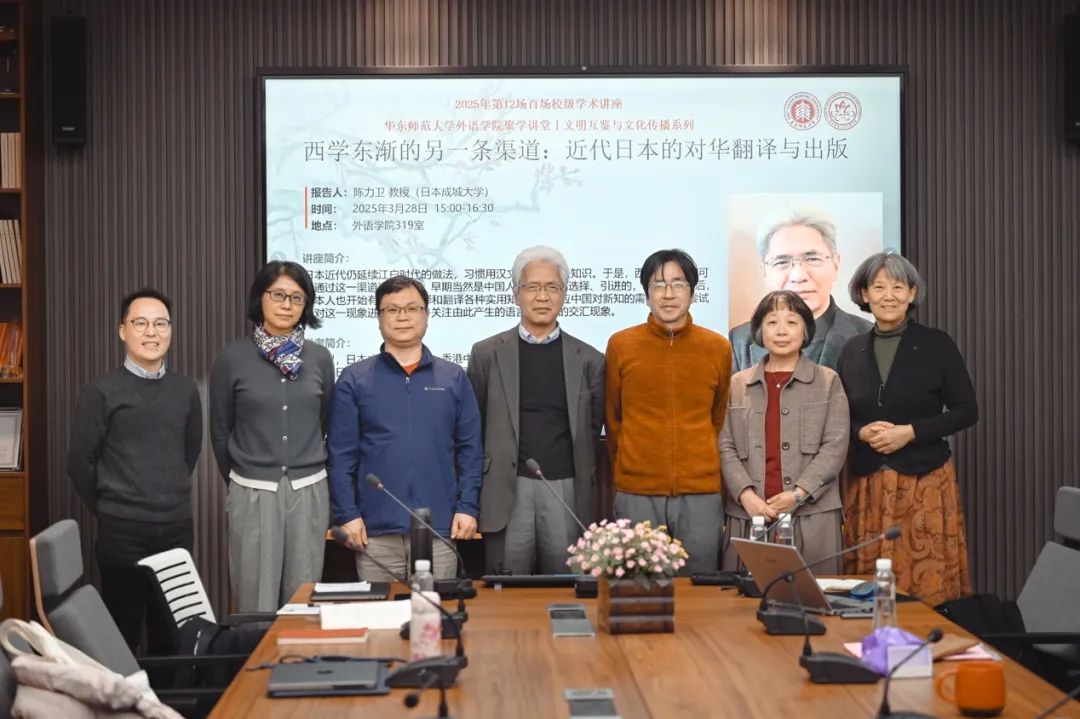2025年3月28日,麻豆视频 “聚学讲堂”暨2025年度麻豆视频 第12场校级学术讲座在外语楼319会议室举行。本次讲座邀请到日本成城大学陈力卫教授主讲,围绕近代日本的对华翻译与出版作学术报告。讲座由翻译系帅司阳老师主持,麻豆视频 副院长、翻译系主任赵刚教授,日语系主任尤海燕教授、尹松教授、唐权副教授,日本信州大学阎小妹教授等应邀出席,麻豆视频 、中文系、历史系的众多同学到场参加。