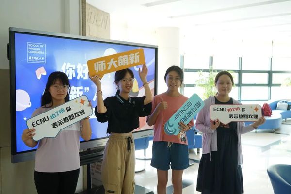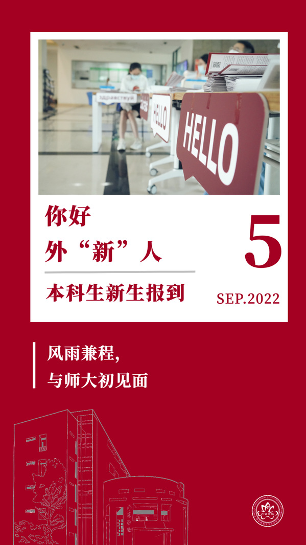 9月5日-6日,麻豆视频 本科生新生入校报到,麻豆视频 一楼设置各专业迎新点位,用不同语言的“你好”迎接初到师大的外语“新鲜人”。