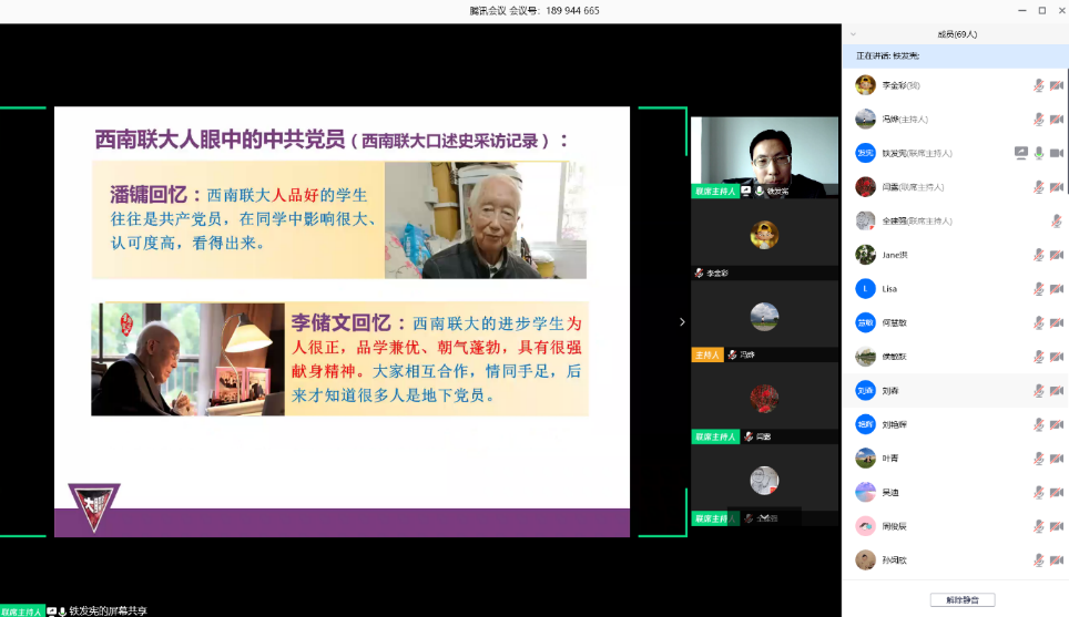 本次主题党史课活动由“我们为什么要学习西南联大党史?”这一问题拉开序幕。铁发宪老师指出,正如习近平总书记所说“历史是最好的教科书,教育要同国家之命运、民族之前途紧密联系起来”,西南联大党史对于我们今天疫情之下的大学教育具有深刻的启示。学习西南联大的辉煌历史,尤其是西南联大时期共产党员的精彩故事,对于当今的学子在为学、为人方面具有重要的启迪意义。