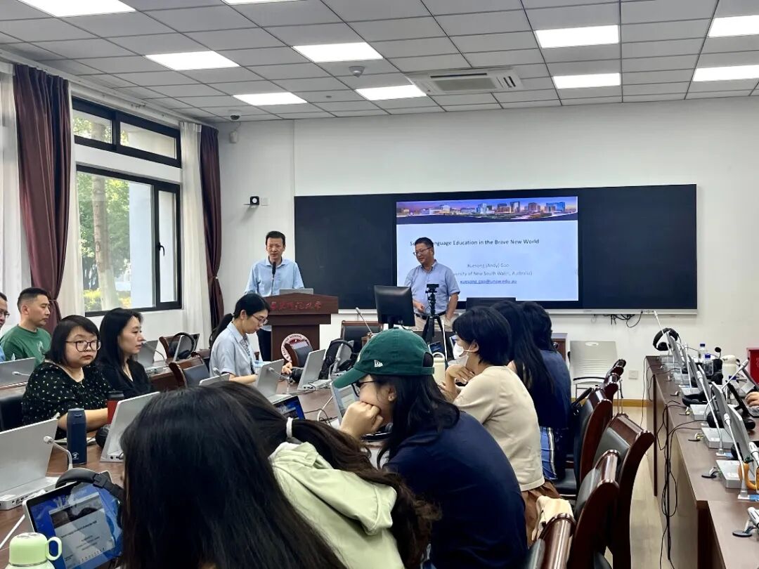 赵朝永教授和朱彦教授主持,同步向丽江师范学院外国语学院的师生开放线上直播,吸引了百余名师生参与。这场讲座为语言教育领域带来了前沿且深刻的思考,引发与会者对语言教育未来发展的深入探讨。