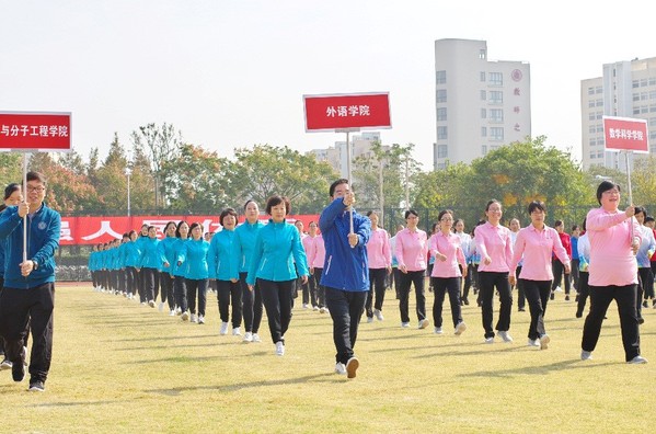 派出了34名教职工组成的代表队,参加了第九套广播操比赛、百人太极拳展示、篮球定点投篮、跳短绳和4×400混合接力赛,展现了我院教职工的运动风采和积极上进、乐观进取的精神面貌。