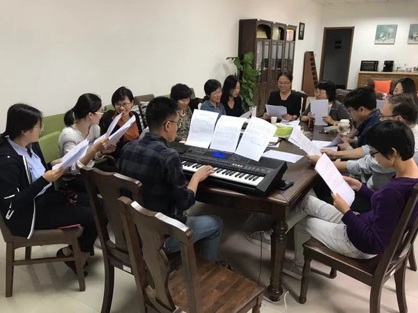 为了准备此次合唱展演,来自外院大学外语教学部、行政、俄语系、翻译系等多个部门的16位教职员工组成合唱团,整整准备了两个月,利用课余下班的时间进行了五次排练。每周一16:30到19:30三小时排练,合唱团团员们千方百计挤出时间,克服各种困难积极参加排练。我们还特地邀请了音乐学院曹政操老师作为艺术顾问指导排练,帮助我们提高声乐技巧和和艺术表现力。