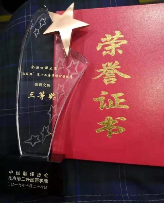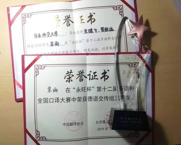 德语系本科生宗雨同学表现优异,取得了三等奖的佳绩。