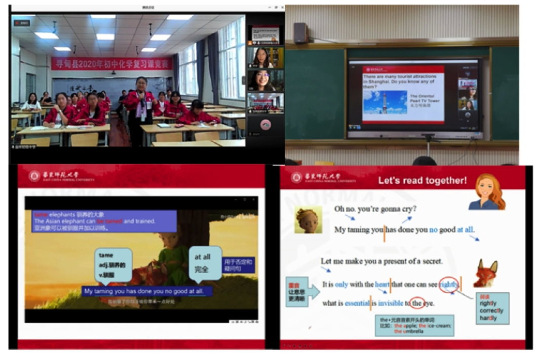组织了一支20人学生志愿团队与云南省寻甸县金所中学开展英语口语教学活动。采取腾讯会议线上形式。课程主要围绕语法学习和口语语音教学展开,选取生动活泼的动画电影片段为素材,通过造句、听音填词、跟读模仿和配音练习等多种方式训练学生的英语口语应用能力。旨在依托现代科技,助力教育扶贫,开拓学生视野,提升英语口语水平。通过几次线上课程的开展,对线上教学形式、效果进行了测试,初步掌握了当地学生英语水平,测试课上,课堂氛围热烈,互动积极踊跃,课后反馈效果良好。试点测试课成功后,今年9月起,我院与金所中学确定了英语口语教育项目试点计划方案,通过线上授课(每周1-2次)、线下授课(每学期1-2次)、阶段性成果检验(每学期单词拼读大赛1次、短文朗读大赛1次)、教师培训以及社会实践等结合,探索英语教学领域的教育帮扶模式。