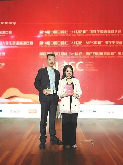 本年度的全国半决赛主题是No person is an island,全国总决赛的主题是Seize the day。王嫣同学凭借真实而鲜活的事例、地道的口语、敏捷的思维阐述了 “坚持真实的自我” 才是Seize the day的本质,并准确地回答了提问评委的问题,充分体现了我校学生扎实的英语功底、优秀的思辨能力和过硬的心理素质。最终,王嫣同学成功夺得全国季军。同时,她还获得了中国“在乎力”特别奖。