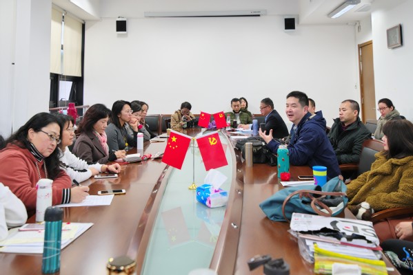 接着,严文庆主任通报了大英部“全员全课程课程思政”的进展情况。目前,大英部所有教师都提交了课程思政的教学设计,包括听说课、读写课和选修课等各种课型,并交流了挖掘课程所蕴含价值观要素的路径,讨论了“用英语讲好中国故事”的《古典小说英译》、《英语畅谈中国文化》等课程的思政作用。另外,他特别强调了项目式学术英语课程要引导学生研究新时代的中国治国理政问题,实现英语学习、学科知识和学术能力、价值观三位一体的发展。