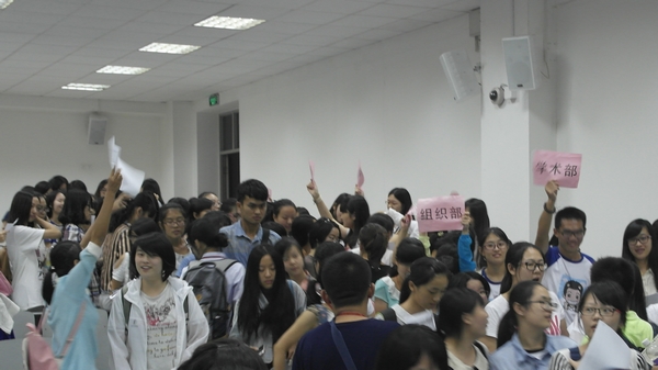 团学联招新大会于2教433教室正式开始。由于突发的设备问题,招新大会的地点在开始前30分钟由外院变更到了2教,但是筹备小组迅速采取行动,发出通知,重新布置了会场,到场新生人数仍达到了160多人,大会如期举行。