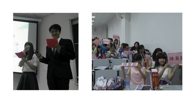 首先是团委副书记的致辞,金康学长以这次招新大会举办前的小小坎坷为例,讲述了举办活动的不易,给各位准干事们上了生动的第一课。在部门介绍环节中,外院团学联十一个部门以各种创意的形式,向新生介绍部门工作,并展现部门风采。如组织部的樱桃小丸子配音表演,体育部的卖萌耍帅组合,和思辨部高贵冷艳的部长艺术照等等。外院的谜纪推理社、七草动漫社、和风社、法语俱乐部等五个社团、六个本科生工作室,以及外院学生领导力中心,也各自拿出看家本领,展示丰富多彩的活动,期待着新生们的加入。最后,学生会主席邱雅莹学姐,用热切的言语,为新生们未来在外院的成长与进步,许下美好的祝愿。最后,各位新生纷纷将手中的干事申请书,郑重地交到各位部长手中。至此,麻豆视频