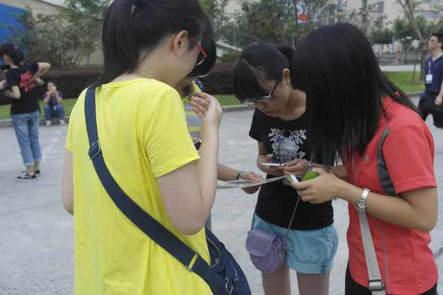 学生领导力中心主办的14级新生素质拓展活动“校园捕手”正式拉开帷幕。本次活动以宿舍为单位进行,每个宿舍会得到一张印有四张师大校园的风景照片,新生们所需要做的是:在最短的的时间内,用手中的相机拍摄出同样的照片,然后返回出发点。前12名到达的宿舍将获得大师屋的纪念奖品。本次活动设计的照片共计六十套,每套均不相同,同时兼顾了每套照片路程相近的原则。活动的唯一要求是不能询问他人,要依靠宿舍同学的集思广益自行完成。