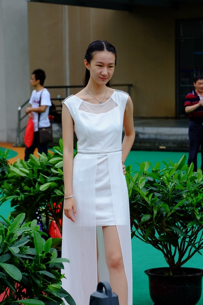 中午十二点,“毕业红毯秀”准时开始。毕业生们或身穿深色帅气礼服,或精致典雅的小礼裙,或是青春洋溢活泼可爱的休闲服,踏着音乐走上红毯。他们都面带笑容,向红毯两旁挥手,兴致高昂。在红毯边上,毕业生的好友、家长等也都纷纷举起手机相机,纪念这一刻。