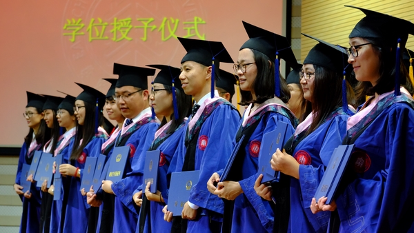的领导与院学位委员会的成员一道为400多名本科、硕士生们进行了隆重的“拨穗学位授予”仪式。毕业生们一个接一个的上台,从老师手中结果沉甸甸的学位证书和毕业证书,和老师们合影留念。