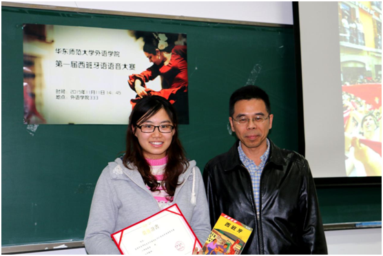 比赛结束后,在评委们的激烈讨论下,评出了大一、大二的个人最佳语音奖和团队奖。颁奖过后,金衡山老师和庄瑜老师对本次活动进行了点评和总结,表明虽然两位并非西班牙语专业出生,却能深深滴感受到西班牙语的魅力和热情,更为本次举办的活动感到自豪和骄傲!