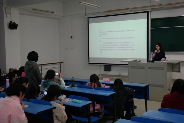 杨庆媛以新闻稿的特点开讲,讲述了新闻稿应具备时效性、准确性、真实性与充实性四个特征。同时,她通过展示身边的例子,使在座学生对在日常工作中如何发邮件及撰写新闻稿有了更直观的认识。并与在座学生互动,希望他们从外院官网上一些新闻稿的实例中学习新闻稿的写作方式。