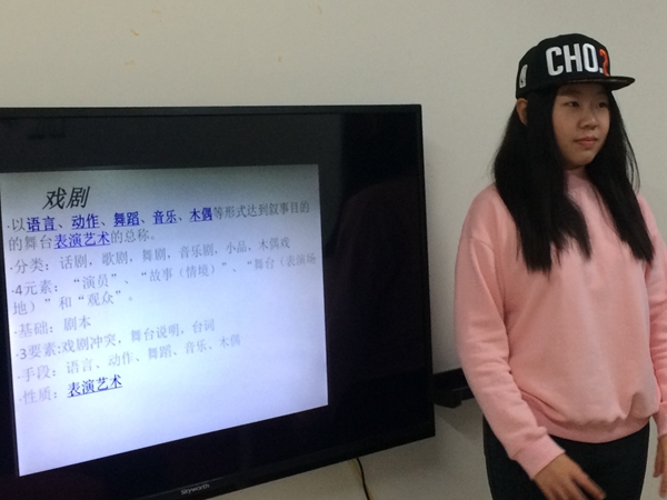 首先,戏剧工作室负责人朴正敏向大家简短地介绍了戏剧的基本因素,使大家对戏剧有了基本的了解。接着,同学们各自讲述对戏剧的看法,并以最近大热的剧本《夏洛特烦恼》电影版与话剧版为例展开了讨论。大家认为虽然电影拍出来的效果很好,但话剧的表现方式更为出色。话剧对演员的演技及应变能力的要求更高,而且观众可以通过演员的一举一动及其神态完全投入到其剧情中。观看电影时,看的是别人的故事。但欣赏话剧时感觉自己也融入到了其中,容易使观众产生共鸣。最后,童晓凡同学讲述了她高中时导演过的舞台剧《活着》,使大家对舞台剧的幕后工作有所了解。