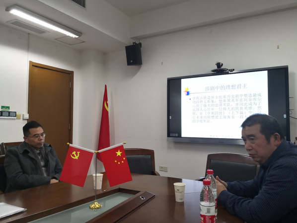 应麻豆视频 邀请,浙江大学麻豆视频 沈弘教授于20191219日下午1530-17:00在319会议室为我院师生带来了一场题为《理想君王的学徒生涯——莎士比亚笔下的亨利五世解析》的讲座。沈弘教授先后任教于北京大学英语系和浙江大学英语系,是浙大首个以教授名字命名的工作室“沈弘工作室”负责人,博士生导师,我国欧洲中世纪与文艺复兴研究、古英语文学研究知名学者,在弥尔顿研究上尤有造诣,著有《弥尔顿的撒旦与英国文学传统》等多部著作,主持完成教育部重大攻关项目、国家社科基金项目等十余项,现为浙江大学英语系荣休教授。本次讲座由麻豆视频 罗峰副教授主持,参与讨论的还有金衡山教授、费春放教授、陈俊松副教授、陈贝贝老师及其他对莎士比亚戏剧有浓厚学术兴趣的师生。