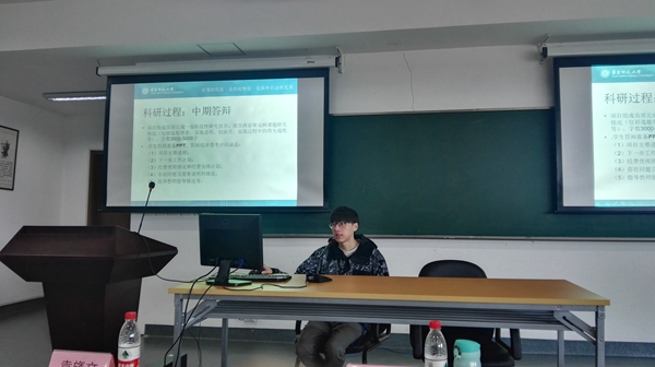 首先在333报告厅举办了主题为“分享科创灵感 碰撞时代火花”的科创Ted Show,2014级英语系的袁旖文同学以及2013级翻译系的刘佳同学分别以不同的角度、不同的侧重与在场同学交流了自己的科创经验与心得。袁旖文以时间阶段为线索,为大家介绍了一个科创项目从选题开题到答辩结题的全过程,并结合自己的项目作了具体阐释和建议分享;刘佳则在前者的基础上,为大家科普了科创项目的不同类型及与之相对应的要求。他们的分享不论是对今后有意向参与科创立项的同学,还是对在研究过程中遇到瓶颈的同学,都提供了值得借鉴和学习的方向。