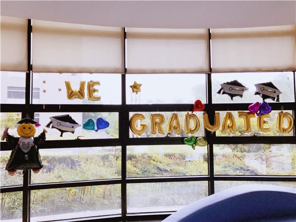 中午的红毯秀上,毕业生们戴上各种各样的头饰和“难忘的箭头”和朋友老师合影留念,走过红毯在背景板上签下名字,尽显迷人风采。纵使天公不作美,细雨蒙蒙,但每一位毕业生都抓住这最后的机会,记录下自己作为一名师大外院学生的模样。活泼与优雅,青春与成熟在红毯上完美交融,为大学四年美好生活增添一抹鲜亮的记忆。