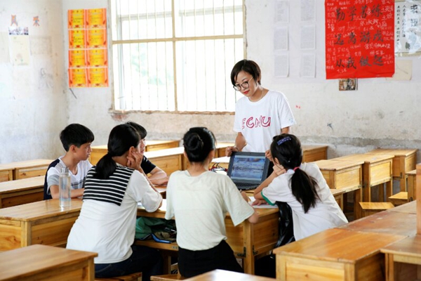,黄瓦红墙,象征着最高学府的学术人文;此时的江口中学,青山绿水,栽下的是年轻学子的求学梦。虽然远隔千里,但志愿者们就如同一阵微风,将这些稚嫩的华花郎吹向梦想的远方,更是无限可能性的未来。(撰稿:陆薇亦;摄影:冯园园)
