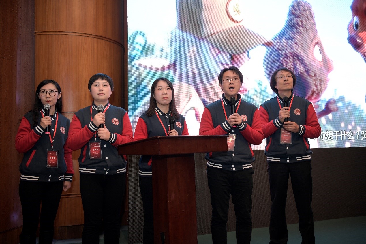 逸夫楼报告厅举行。决赛第一轮中,两支参赛队伍根据领队会上的抽签结果,对同一段消音视频进行现场配音。我院代表队初战告捷,以一段惟妙惟肖的《疯狂动物城》配音战胜了金山区教育工会闯入第二轮比赛。
