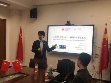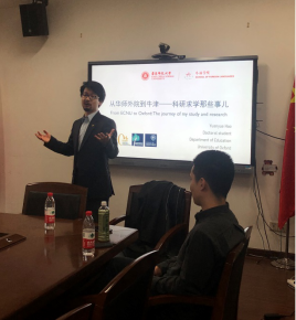 首先学长通过亲身经历,叙述了自己从华师本科到牛津博士的求学历程,表示自己科研的动力来源于生活中发现的问题。比如,他曾经在新东方教育机构教托福写作,所以在复旦读研期间他的主攻方向是写作,既提高了写作能力,又对科研大有裨益。