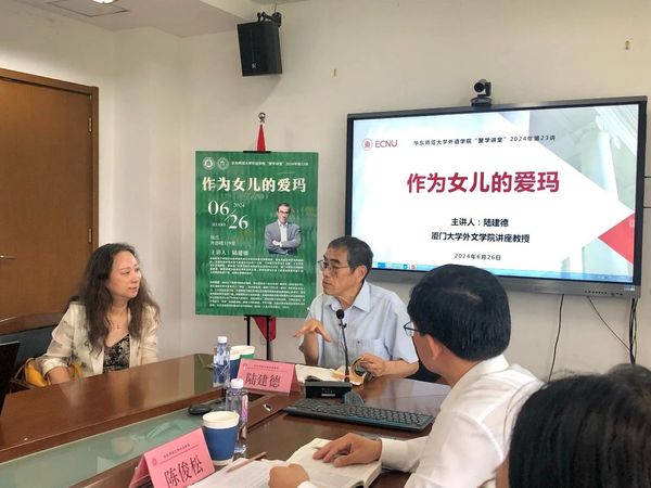 法语系袁筱一教授、日语系乔颖副教授、大外部汪燕老师、西班语教研室陈硕老师、英语系黄珊云老师参与讨论,讲座由英语系系主任陈俊松教授主持,吸引了校内外众多硕博士研究生参加。