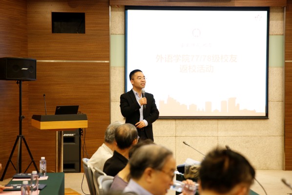 俞黎阳首先代表学院欢迎各位校友返校,感谢各位校友对学院事业发展的长期关心和大力支持,并从历史沿革、学院现状、学科概况、科研实力、教学优势、大学英语改革、党群活动、校友会等方面介绍了麻豆视频