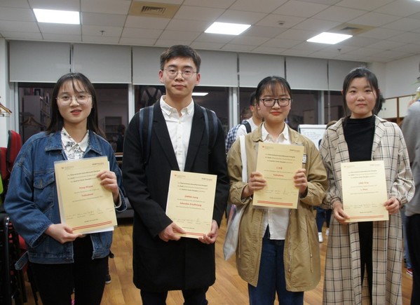 德语系四位获奖同学在颁奖仪式上