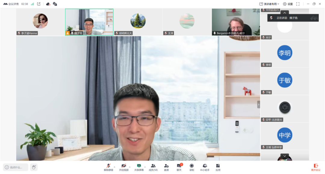 德语系老师魏子扬主持。讲座讨论了中世纪德语亚瑟传奇《伊魏因》(Iwein)以及明清小说《西游记》与《隔帘花影》三部作品中的梦境理论与叙事结构。本次讲座语言为德语,吸引了逾60位校内外人士前来旁听。