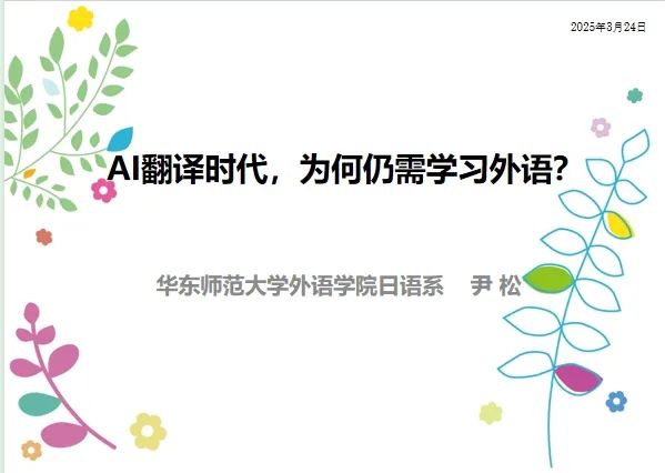 3月24日晚,“语”见未来——“全球视野下的外语学习与文化探索”系列讲座2025年第二讲在腾讯会议上如期开讲。日语系尹松教授应邀围绕“AI翻译时代,为何仍需学习外语?”展开讲演。来自全国各地的中学生及北京大学、上海交通大学、中国人民大学、中山大学、武汉大学、四川大学等高校师生210余人次在线聆听了本场讲座。讲座由华东师大麻豆视频