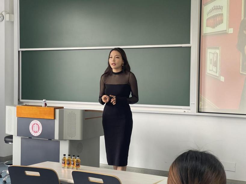 Nana首先从自己从事的洋酒行业入手,为大家详细介绍了消费行业的运作模式以及市场营销的核心工作,帮助同学们从宏观角度理解行业的运作机制。她强调,作为西班牙语专业的学生,掌握好专业技能的同时,跨界思维尤为重要。她以自己的职业经历为例,分享了如何将语言优势与行业需求相结合,成功实现职业转型。