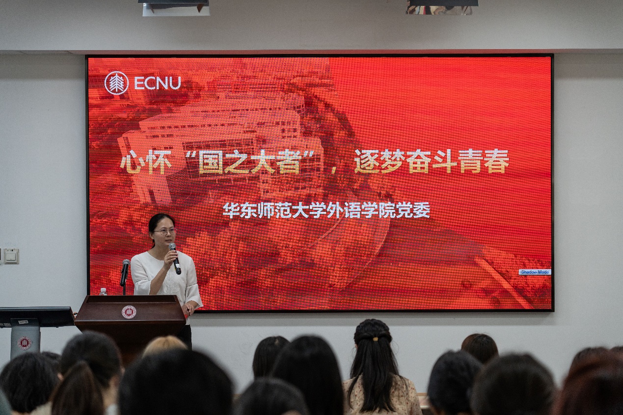 底蕴深厚的历史文脉以及扎实的党建传统谈起,详细介绍了学院70余年来发展的峥嵘历程。她强调,学院一代代师生党员坚定理想信念,不断叩问初心、砥砺奋进,发挥外语专业优势,成为推进中外文化交流互鉴的中流砥柱,为国家和社会的发展、为学校学院建设做出了突出的贡献,值得青年学子传承文脉,持续发扬。