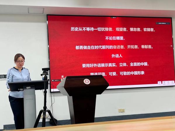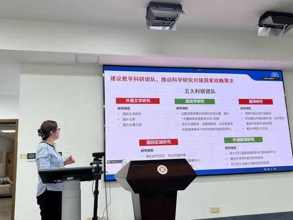 的培养方案和培养目标,并提出希望:我校外国语言文学学科的学生要成长为热爱中国外语教育事业,具备国际学术视野和扎实研究能力,能够用外语熟练书写、传播新时代中国故事,积极参与、服务全球治理,推动文明互鉴的卓越外语人。