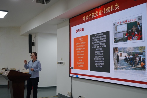 为了让同学们更好地了解学院组织党员学习的情况,闫露介绍了2019年学院党委组织的教职工党员到中国革命圣地——陕西延安的活动,并分享了英语系金衡山教授在延安考察时期所写下的《到延安》一诗,同时号召广大青年党员同志利用课余时间寻访中国共产党的历史胜地、纪念馆、文化博物馆,去深度了解、学习中国共产党党史。
