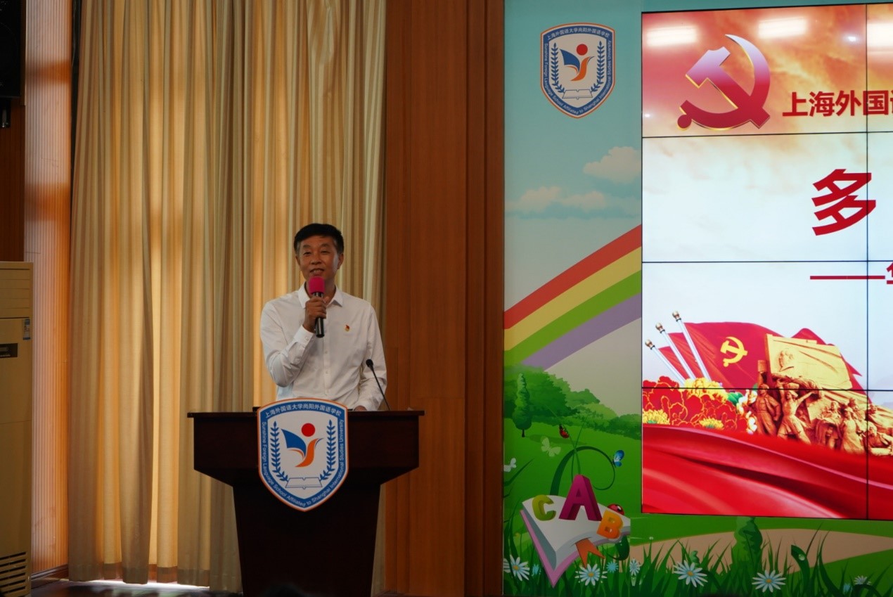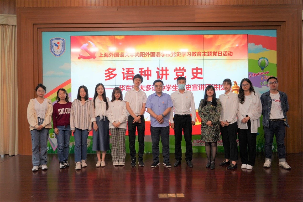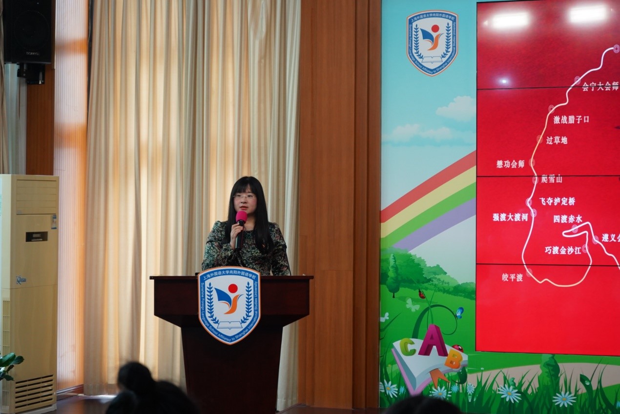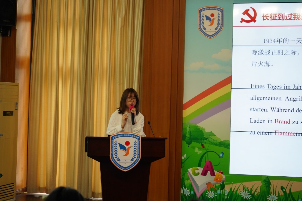 2020级学术型研究生党支部书记、日语系教师金晶的带领下,走进上海外国语大学附属尚阳外国语学校小学部,用英、日、德、西班牙四国语言向尚阳的党员老师和学习外语的学生代表,以“长征到过我家乡”为主题进行了宣讲。活动由上外尚阳学校党支部书记李显军主持。